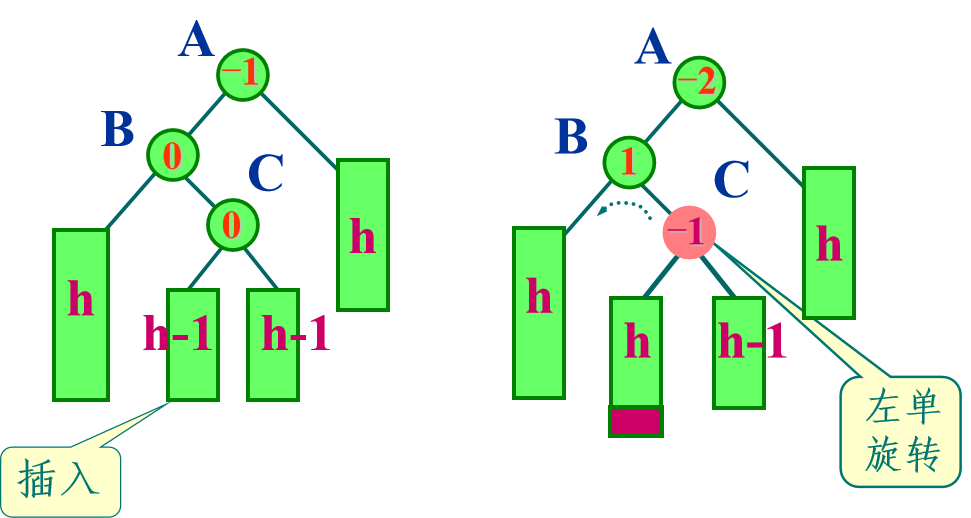 if (B->bf == 0) { // 这个情形会在之后提到的删除操作中出现
