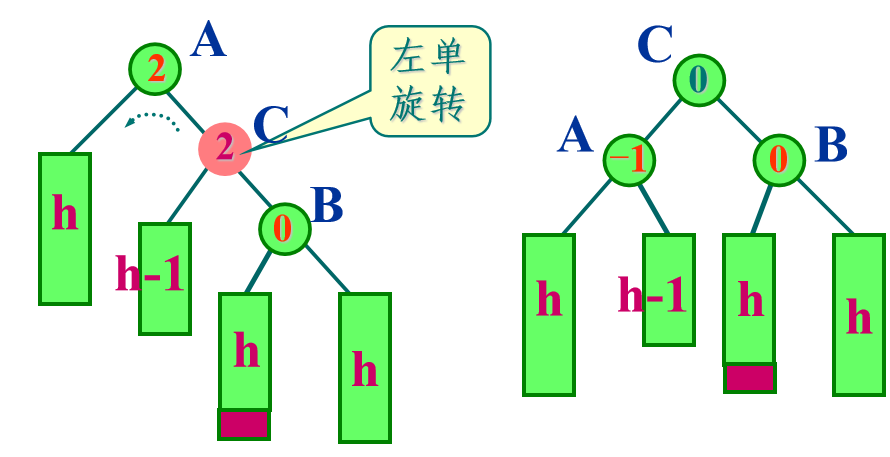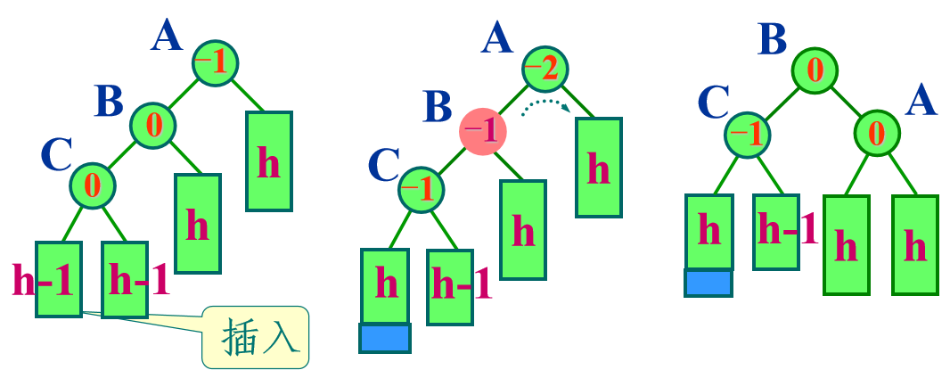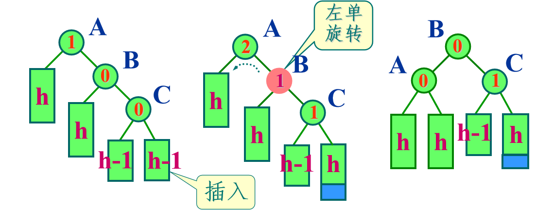 注意平衡因子的更新情况取决于 \(C\) 的旧 bf 值,而不能像上一种情况一样直接设为 0