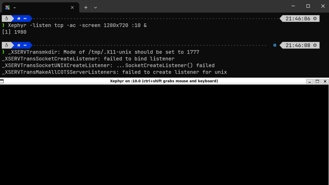 1- 使用 Xephyr(嵌套 X server)建立本地的 X server,用来接收之后远程服务器的图形化界面