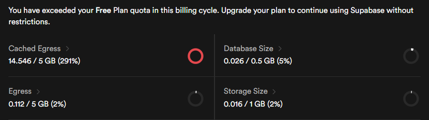 只过了两天 Cached Egress(缓存出站流量)就爆了,果然免费服务什么的还是比较拮据