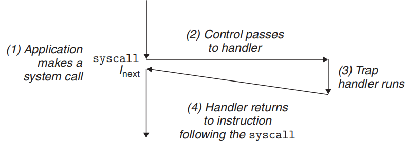 CPU 在执行完第 \(i\) 条指令时检测到异常,或者在执行完第 \(i\) 条指令后收到中断,就会停下当前用户进程,转到相应的异常 / 中断处理程序去执行。具体的操作如图