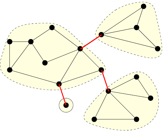Let \(B\) be the set of bridges in a graph \(G = (V,E)\). Then, every connected component in \((V,E \backslash B)\) is 2-edge-connected. Every such component is called a 2-edge-connected component of \(G\).