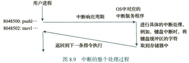 对于中断处理,分为 I/O 中断,时钟中断,处理器中断,会在下一章介绍