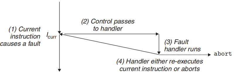 | Fault | 故障 | 异常发生时,CPU 检测到错误,指令还未完全执行完 | ❓可能可恢复 | 异常处理后返回到原指令重新执行 也有可能中止相应的程序 |