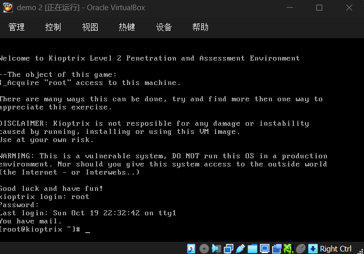 启动 VirtualBox 中的 Kali 攻击机与 Kioptix 靶机,网络采用 NAT 连接