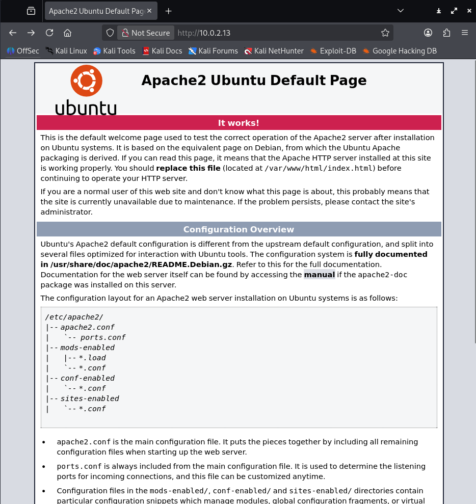 考虑靶机 ip 为 10.0.2.13,继续扫描端口 nmap -sV -sC 10.0.2.13,看看有哪些服务项