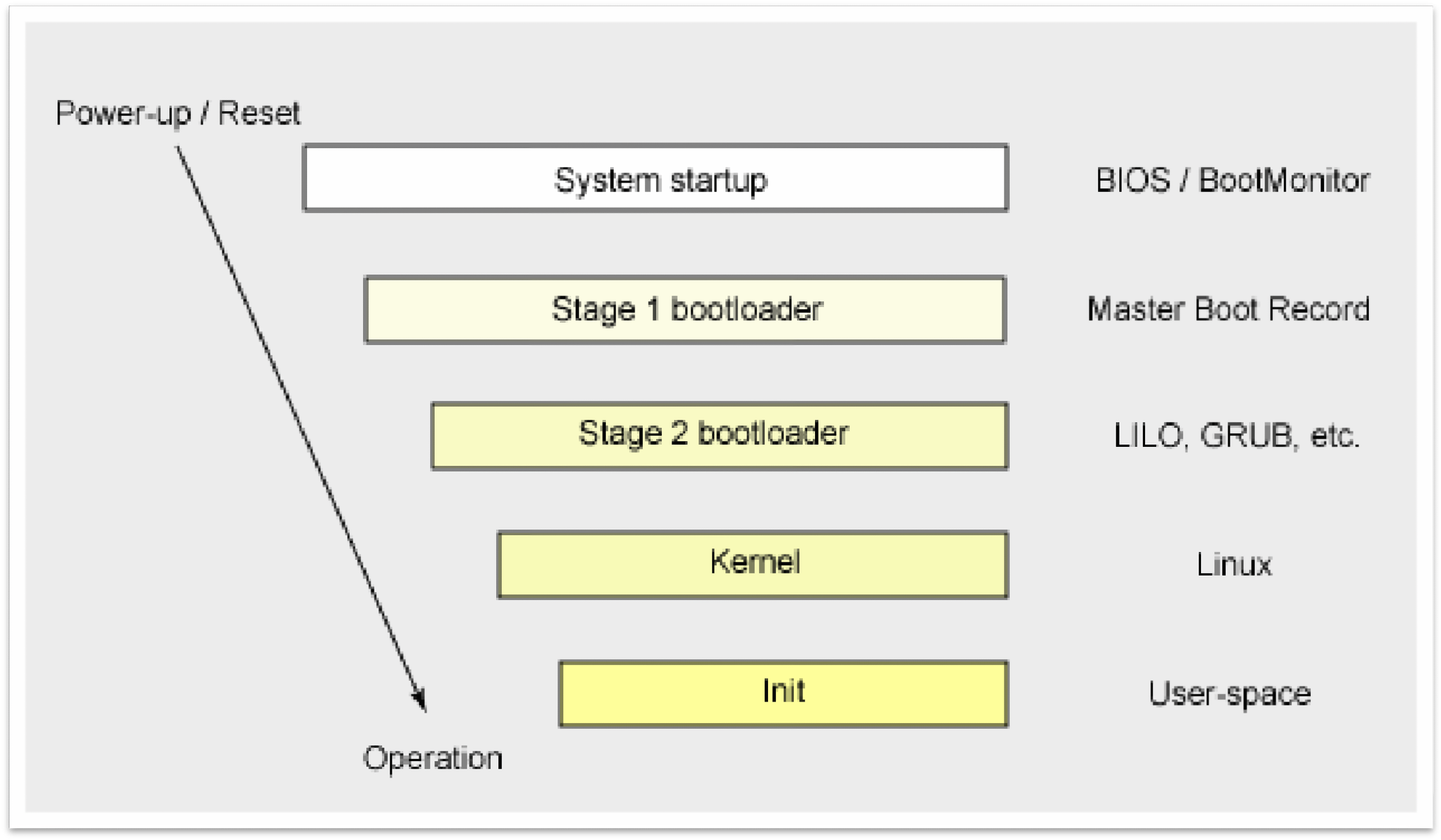 /sbin/init或 systemd),进入用户空间,开始运行系统服务、启动图形界面等,最终系统进入可用状态(Operation)。