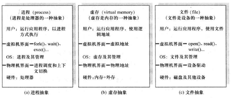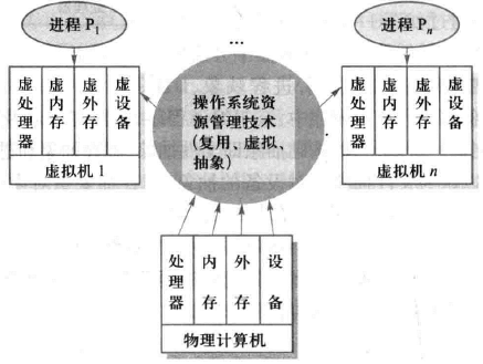 计算机系统的物理资源可以分为两类:计算/存储类、接口类。操作系统通过一些管理技术控制软硬件资源的分配,最终体现为“应用程序的虚拟机”: